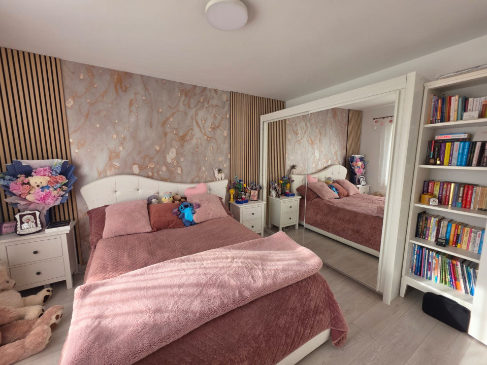 Locuința oferă un living luminos, o bucătărie practică și bine organizată, două băi, o debara utilă, precum și trei dormitoare primitoare poziționate la etaj. De asemenea, beneficiază de două balcoane și de deschidere la două străzi, ceea ce îi conferă acces facil și funcționalitate. Zona este una liniștită, aflată în plină dezvoltare, cu acces rapid către magazine, transport și alte facilități urbane.